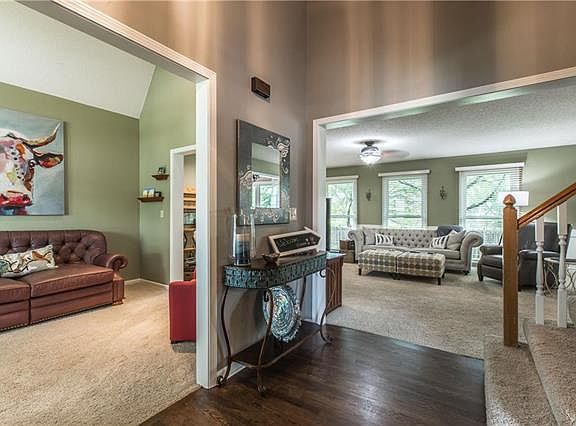 Lovely home w all of the big stuff done! Siding, composite deck, newer windows, 50 yr roof all easy to maintain! Hardwoods refinished, granite in kitchen w/painted cabinets & Nest thermostat are some of the upgrades. Updated master shower & 2 walk in closets! Industrial finish in basement w electricity & overhead lighting makes it a great rec space! East facing deck is an entertainers dream! Olathe has award winning schools, parks close to this home & wonderful bike and walking trails!