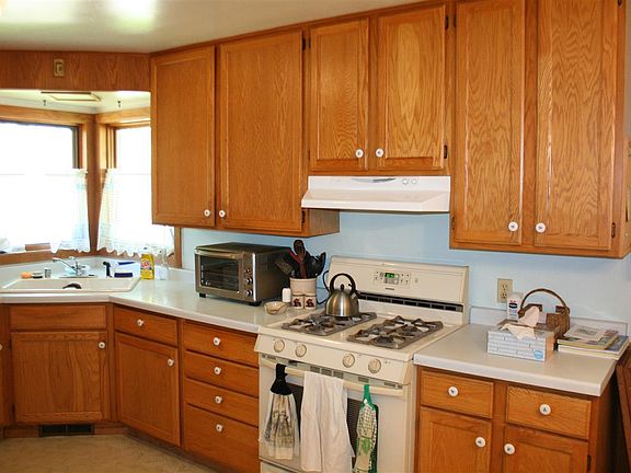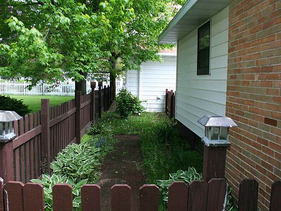 Nice 3 bedroom corner lot, 1 bath, 2+ car garage. Extra garage attached with central air and heat and exhaust system. Plus attached enclosed lean to. Hardwood floors, hall closet door with lock and safe. Partial finished basement. Lots of cupboards, fenced yard and patio. Woodworking equipment and wood not included, must go through owner.