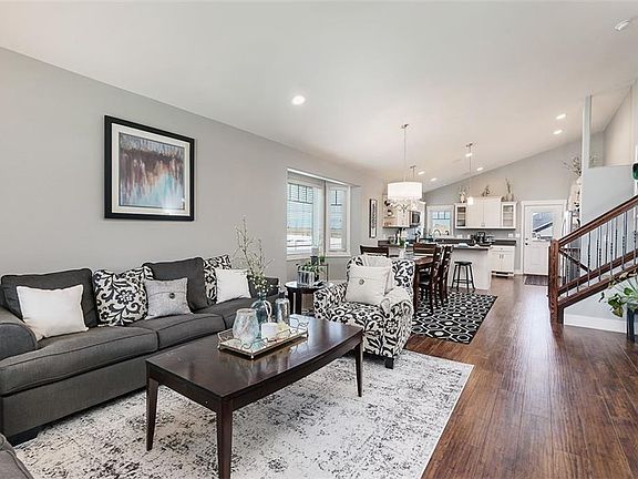 Bright and open, this home a must see! The main level features vaulted ceilings and a custom kitchen with peninsula, gas range, large pantry and ample cabinet space. The master bed and bath are located on the upper level with a walk in tile shower with surround sound speakers! The upper level has 2 spacious additional bedrooms and bath. The lower level has soaring ceilings you will not believe, featuring a large family room with gas fireplace, 1 bedroom and 1 bath. Sound proof theater room almost complete and private office. Oversized heated 3 car garage, large fully fenced, landscaped yard with deck and extra patio for entertainment with surround speakers outdoors as well!