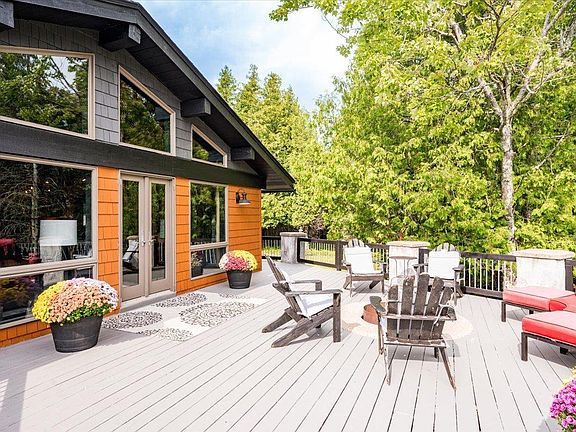 Amazing! This 5 bedroom rustic contemporary ranks a "10" on the coolness scale! The great room is the centerpiece of the home and serves as the gathering space. Custom birch cabinetry and shelving complement the bamboo floors and cedar pillars harvested from the property. You'll love the cozy Hearthstone European wood-burning fireplace when cool fall and winter weather approaches. Two bedrooms and a full bath complete the main level. A fabulous primary suite is tucked away on the upper level! Relax in the spacious sitting area or the beautiful bath with a soaking tub and shower plus a huge walk-in closet. The lower level has two additional bedrooms, a third full bath and a comfortable family room with built in shelving and workout area. Oh, did I forget to mention the 2 story climbing wall in the rear foyer? Recreational amenities abound outdoors! The front deck features a wood-burning fire pit and plenty of room for year round entertaining. The deck wraps around to a covered BBQ area & patio overlooking the rustic sauna and a lined swimming pond with a babbling brook, so you can take a quick dip to cool off after your sauna or playing a game at the full size sand volleyball court. Raised bed gardens with numerous shrubs, perennials and apple tree add a soothing touch of color in the yard. Attached and detached garages provide plenty of vehicle and toy storage. Miles of maintained trails can be accessed just off the property for year-round enjoyment, connecting to Two Harbors' lighted ski trails. All of this is tucked away in a secluded, country setting less than a mile from the city limits and the new high school! This beautiful property is truly a one of a kind!
