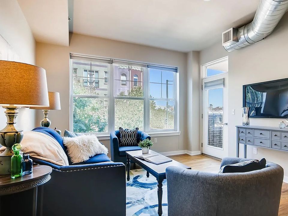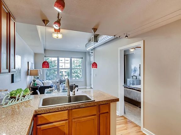 Step into this light-filled condo featuring a spacious, open layout with beautiful hardwood floors flowing through the kitchen and living room. The gourmet kitchen is a chef's dream, complete with granite tile countertops, under-cabinet lighting, custom fixtures, and all appliances included ready for you to cook and entertain in style. The generous primary suite offers a private retreat with an en-suite bathroom and a massive walk-in closet, providing ample storage space. A second non-conforming bedroom offers flexibility for guests, a home office, or extra living space. Unit also comes with a storage unit! Included in the cost of rent. Additional features include fresh paint, brand-new carpet, modern lighting, and a private covered deck ideal for relaxing with a meal or a glass of wine while soaking in the vibrant energy of LoHi. Live the ultimate city lifestyle in one of Denver's most desirable neighborhoods. Don't miss out. This unit is NOT furnished. Parking: $150/month (1 assigned spot available in a secure garage) Sewer/Water/Trash: $150/month flat fee Gas/Electric: Tenant sets up and pays Internet: Tenant sets up and pays 12-month or longer lease term