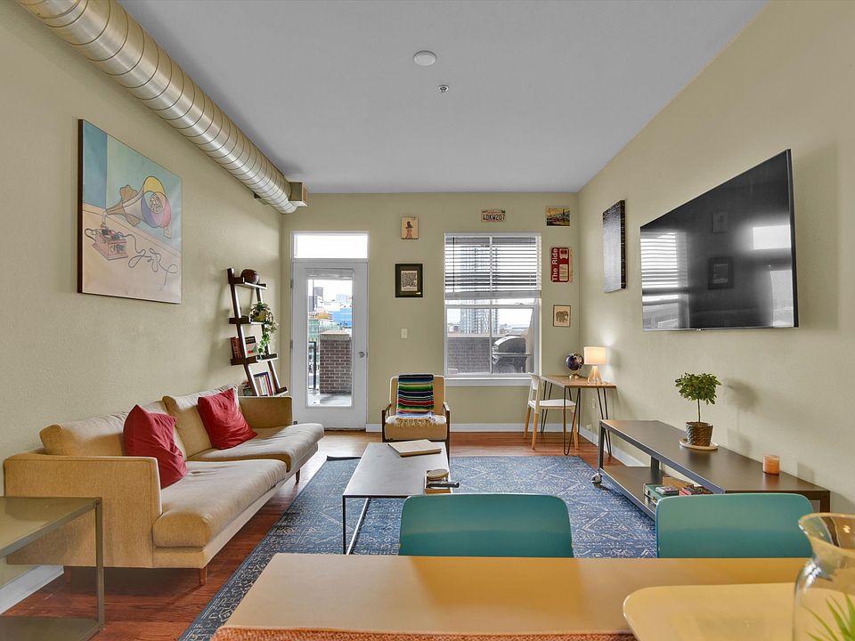 This stylish 2-bedroom, 2-bathroom condo in Denver's Lower Highlands (LoHi) neighborhood offers a massive patio with stunning downtown views. Optional furnishings make it ideal for those seeking a move-in-ready home or a space to make their own. The open-concept layout features a modern kitchen with stainless steel appliances and a large island, perfect for cooking and entertaining. Natural light pours in through large windows, creating a bright and inviting atmosphere. The primary bedroom includes an en-suite bathroom, while the second bedroom is great for guests, a home office, or extra storage. In-unit laundry and a reserved parking spot add to the convenience. Located steps from LoHi's top restaurants, shops, and cafes, this condo offers the best of city living with unmatched views and modern comfort. - $200/month - Parking (1 garage spot available) - $150/month - Utilities including electricity, gas, water, sewer, trash - $75/month - Internet - 1G through google fiber