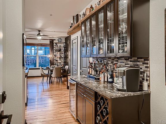 Eye Candy Every Day! Welcome to this exquisite condo nestled up high on the 4th floor, giving you breath taking views of the Denver Skyline and mountains. As you step inside, you'll be captivated by the elegance of the space, featuring hardwood floors that span throughout the entire level. Custom paint throughout the condo adds a unique touch to every room, creating an ambiance that's both inviting and sophisticated. The kitchen has been thoughtfully updated with custom countertops, designer cabinets, a stunning island, a coffee and entertaining bar area, creating a modern and functional culinary haven. A large living room area and eating space provide the perfect place to entertain guests and enjoy our beautiful city. Just down the hall you have a beautiful full guest bath, a large 2nd bedroom and a the primary suite is a true retreat, boasting a spacious walk-in closet to accommodate all your wardrobe needs. The en-suite bathroom exudes luxury with its European-style glass shower, providing a spa-like experience right at home. Step outside onto your private patio area, where you'll be greeted by breathtaking city and mountain views. Whether you're sipping your morning coffee or enjoying an evening under the stars, this outdoor space is the perfect place to relax and unwind. This condo offers two rare parking spaced in the covered and secure garage and has the perfect blend of modern upgrades, style, and panoramic views, making it a truly exceptional place to call home!