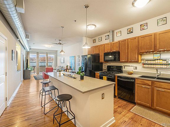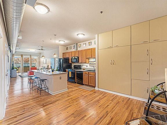 Location, Location, Location! Stunning, West-facing penthouse unit, featuring expansive balcony with gorgeous city and mountain views, located in a secured and well-maintained building. Open floor plan with 9.5-foot ceilings, extensive hardwood floors, huge kitchen island with new quartz countertops and kitchen sink, gas range, built-in spice rack and all kitchen appliances will be included. Spacious office area! One bedroom, 2 bathrooms with second bedroom area (non-conforming) with pull down/murphy bed and tons of storage. Primary bedroom has a large walk-in closet and ensuite bathroom with linen closet and opens to the spacious balcony. Windows/doors include sunshades. This loft comes with one deeded parking space in the heated, secure garage (#1-43). In-unit laundry room with included washer & dryer. Enjoy the fitness center and outdoor hot tub on the 2nd floor. Steps from REI, Platte River Trail, Commons Park and all of LoHi's restaurants, shops and bars. Walk to Mizu Izakaya, My Brothers Bar, Little Man Ice Cream, Linger, Postino LoHi, coffee shops, breweries and boutiques. Walk and bike to downtown, Union Station, sports and entertainment. Easy access to I-25 and I-70. It doesn't get any better than this!!