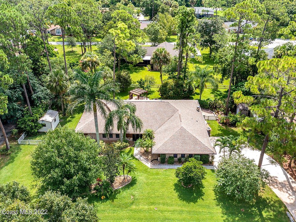Welcome HOME! Sheridan Glenn of West Melbourne! Check out this SPACIOUS and BEAUTIFUL 4BR/2BA/2CG home on a half acre w/no HOA! This home features an elegant gourmet kitchen w/ cherry wood cabinets (roll-outs galore), granite counters, recessed lighting, a built-in wall oven & microwave, cooktop, SS hood range, and a large granite island w/ seating. This home has a flexible floor plan, starting w/ the cozy family room with a wood-burning fireplace currently used as a dining room. The living room is a great size w/ a dining or office area. The spacious primary bedroom offers a custom walk-in closet system installed in 2021. The bathroom offers double sinks and a walk-in shower w/ access to the backyard. One of many great features is a whole house Generac generator-2021, storm shutters & hurricane-rated garage door that will provide peace of mind. The French doors lead you to the trussed porch w/ a tongue/groove wood ceiling, beautiful pavers & equipped w/ a mini-split A/C so you can watch nature in comfort. You will also enjoy cozy nights by the fireplace or have a movie night at home in the extra insulated & oversized garage w/ A/C! The outside is impressive, with a pergola, a masonry barbecue-brick oven, mature landscaping, and plenty of room to roam or add a pool. Located on a quiet dead-end lane w/ easy access to 1-95, shopping, restaurants, the beaches, Harris L3, Grumman, and much more.