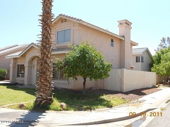 Beautiful 4 Bed 3 Bath home in great Chandler location!! This home has a spacious and bright kitchen with white cabinets & tile floors. Great room boasts a fireplace and ceiling fan with carpet and wood blinds. Also includes a bedroom & full bath on the first level!! Ceiling fans in all spare rooms! Home is close to parks, green belts and community pool! Easy care landscaping and 2 car garage. Appliances include Refrigerator, Built-in Microwave, Stove, Dishwasher and Disposal. Washer/Dryer hook ups only. Walk to Shumway grade school!