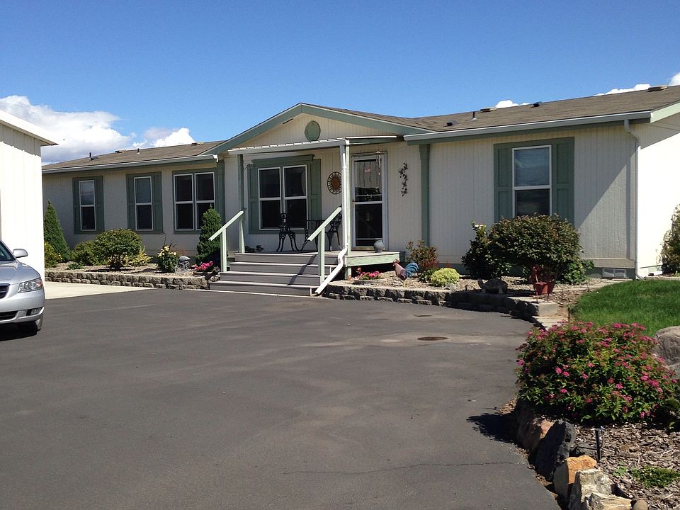 Three bedroom two bath modular. Master suite and bath. Large living room dining room and kitchen. Kitchen has an island and large walk-in pantry. Office/ Den also. Outdoor patio, landscaped yard with sidewalks, paved driveway. Underground sprinklers. Fenced property, has alfalfa growing on the acreage. Free senior water rights. Huge three bay garage. Shown by appointment only 509-945-1362