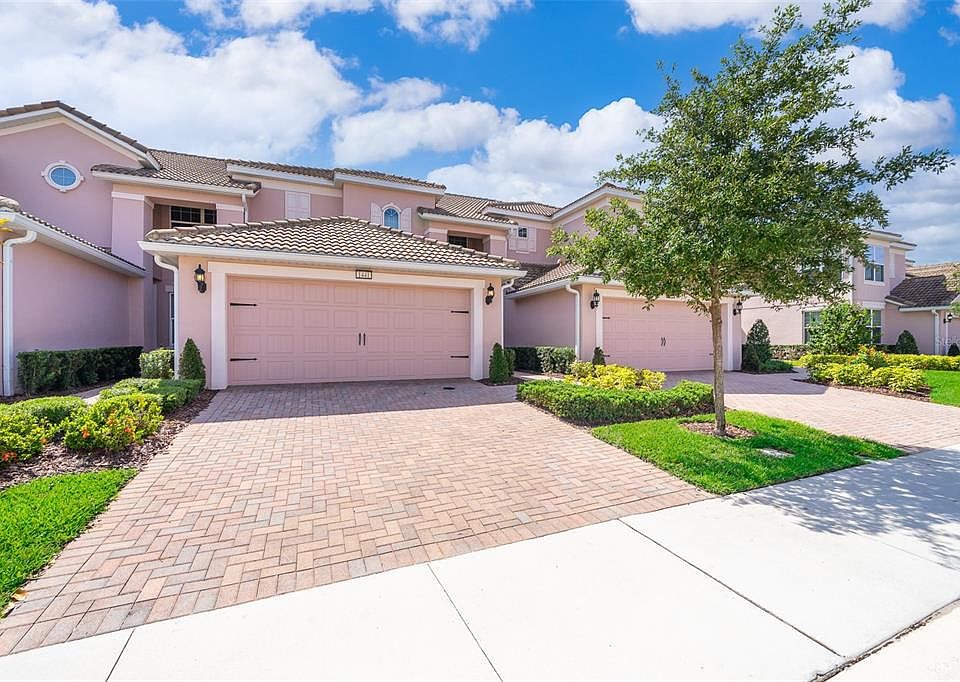 BEAUTIFUL TOWNHOME-VACANT-EASY TO SHOW- BRING CASH or CONVENTIONAL OFFERS! It is the desirable Sophia model which is a 2 story 3 bedroom/2.5 bath layout. The kitchen offers beautiful stainless steel appliances and ample prep space for cooking with and open view to the GREAT room. This home is perfect for entertaining, the screened in lanai is accessible from both the breakfast area & the great room and offers views of a quiet green space. All of the bedrooms are located upstairs. The Master bedroom has a luxurious feel with the accented tray ceiling and double doors leading into the master bath. In the master bath there is a double sink and an enormous walk-in closet with a window.The HOA dues include internet, cable, and pest control. The community of Veranda/Bella Trae is located only steps away from the stunning clubhouse that includes a state of the art gym, fitness studio, zero entry saltwater pool, media room, billiards room, bocce ball court, a putting green, social activities for all, and much more. Conveniently located close to world class entertainment, airports, shopping and dining. This home will make you feel like you are on a permanent holiday.