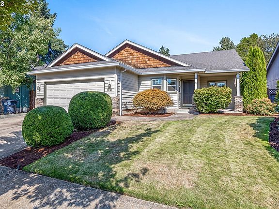 Just Listed! Well Maintained One Level Home in Quiet River Road Neighborhood! Enter into the Open Floor Plan and Feel Greeted by Soaring Vaulted Ceilings and a Corner Gas Fireplace! Kitchen Offers a Bay Window Allowing a Ton of Natural Light to Flood the Space. Large Bedrooms and Spacious Primary Suite with Double Closets, Private Bathroom, and Access to the Patio! Backyard Offers Both Covered and Uncovered Patios, Sprinkler System, and Low Maintenance Landscaping! Newer Updates Include Furnace, Central Air, and Water Heater! Great Location which is Conveniently Close to Emerald Park, Schools, and Downtown Eugene!