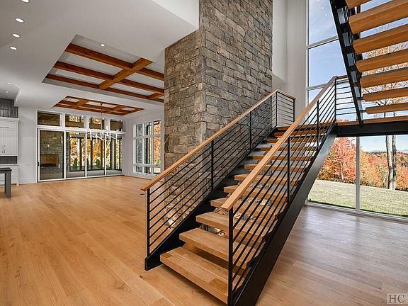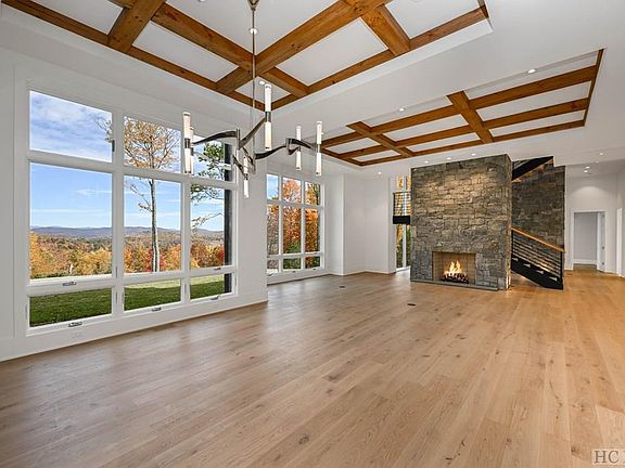 This exquisite residence stands as a testament to years of careful site selection, visionary design, and exceptional craftsmanship. Nestled on a five-acre expanse, the property reveals an illustrious panorama of mountainous horizons, framing the grandeur of nature against the home's sweeping lawns and impeccably curated garden area. You are greeted by the sophisticated motor court, adorned with refined gray and black pavers, leading the way to the home's stately stone-clad exterior—an indisputable tribute to architectural brilliance. Upon entry, a mesmerizing long-range view beyond the floating staircase of steel and white oak unfolds, evoking a sense of grandness and openness. Every corner of this magnificent property is blessed with abundant natural light streaming in through expansive windows. A grand great room with a magnificent stone fireplace seamlessly transitions into a sizable dining area and a well-equipped kitchen with an enormous island and a consistent theme of natural stone accents. The home's charm extends to a seasonally perfect porch, complete with accordion doors and another magnificent stone fireplace. Its high, custom-beamed ceilings mirror the grandeur of the blue stone that transitions flawlessly to the outdoor areas, including the grilling porch. The residence also presents an elegant palette underfoot—wide plank oak flooring unfurls across the property, lending an unimposing, sophisticated finish to its interiors. The oversized bedroom suites with lavish ensuite bathrooms are generously sized and elegantly designed, boasting custom tile work and frameless glass finishes for a modern touch. An inviting family room on the upper level provides unparalleled views, just a few steps from the welcoming sitting room with morning kitchen and impressive wine room. This mountain estate is graced with exquisite attention to detail and luxurious finishes. Make your mountain dream home a reality today! Fireplace Features: 2 or more