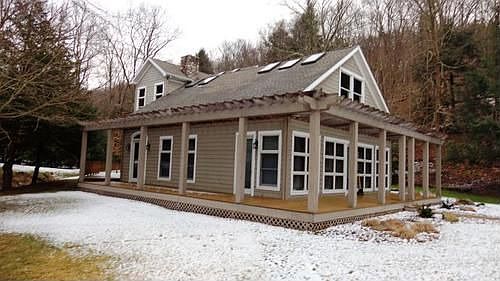 Everything you'd expect in this 2 story contemporary style home, including a stream running through the property. 4 bedrooms, 1st flr. office, kit. with granite counters, ceramic tile flooring, huge family room with access to the wrap around composite deck and more. Must be seen to be appreciated. Ask for Charlie. Lockbox on Shed Door.