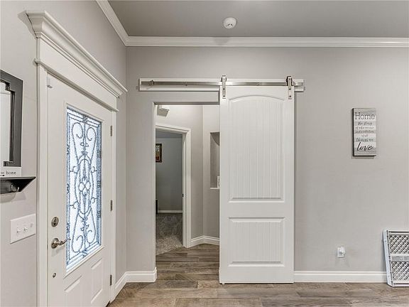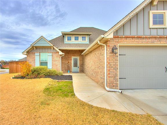 Gorgeous corner lot Edmond Home.This home will check off all your boxes, 10 ft. ceilings, wood-look tile, island with built-in sink and dish washer, walk-in pantry, and beautiful finishes! Gas fireplace in the living room and wood-burning fireplace adorning the covered patio! Split but open floor plan 4 bedrooms downstairs including a master with boxed ceiling and lighting, oversized closet, walk-in shower, jetted tub, and double vanity! Second story has a full bathroom and large bonus room. Covered patio wired for cable, gas line, and wood-burning fireplace, the back yard is large and fenced for privacy.Additional amenities: In-ground storm shelter in 3rd car garage - Rannai tankless hot water heater - Tabor water softener - Wired for security system, Air filtration system, Fresh air ventilation system - Sprinkler system.