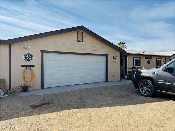 Horse property on over an acre in Pahrump! This spacious 2,054 sq. ft. manufactured home features 4 bedrooms, a den, and tile flooring throughout. The fully renovated custom bathroom is fully handicap accessible for added convenience. The property is cross-fenced, offering separation between the main yard and horse area. An oversized two-car garage with an attached workshop and three additional storage sheds provide ample space for your tools, toys, and equipment. Enjoy energy efficiency with fully paid solar, new windows and peace of mind with a backup Generac generator. A perfect blend of comfort, functionality, and equestrian-friendly design—don’t miss this opportunity!