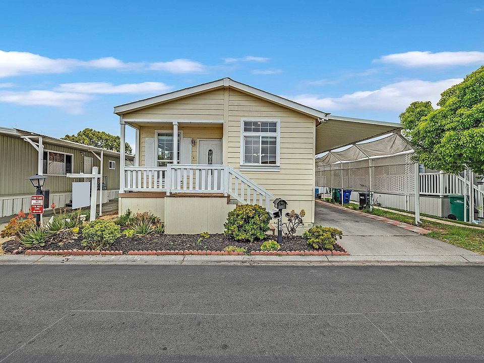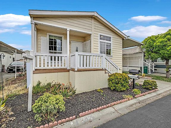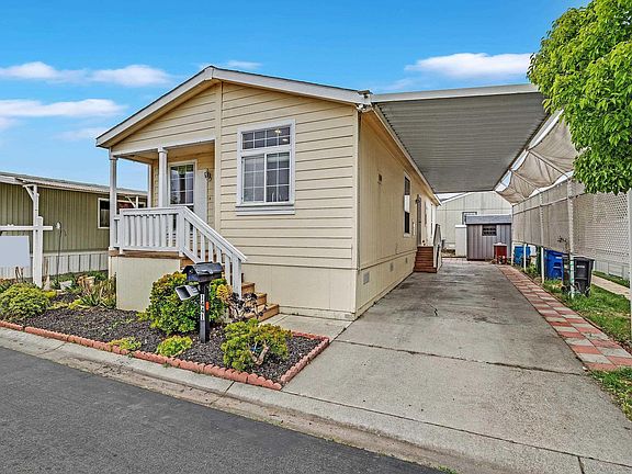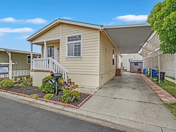Super cozy Fleetwood manufacture home with Whirlpool Appliances. 3 bedrooms, 2 bathrooms. Refrigerator, washer/dryer are included. Brand new microwave. Sun tunnel skylights. Toilets come with Uspa toilet bidets. Spacious primary bedroom suite w/walk-in closet. High flat ceiling. Laminated wood flooring. Driveway possible to park 3 cars. Rent control area. Low Space Rent plus utility. Easy access to I880, 92 bridge.