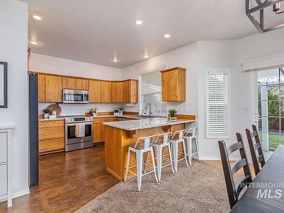 Welcome home to the coveted Eagle community of Lexington Hills. This cul-de-sac home has access to it all. Close proximity to Stephan C. Guerber Park, as well as the Ada/Eagle Bike park. Close to golf, dining shopping and all the community events in downtown Eagle. There is a full play/common area in the middle of the cul-de-sac, the backyard is fully fenced and surrounded by mature landscaping making perfect for privacy, as well as entertaining. There also is a gate in the back yard with direct access to one of the many community ponds and open areas, great for walks and fishing. The backyard has a covered pergola, as well as a covered front porch. Inside the home as two separate downstair living areas, brick gas fireplace, breakfast bar, and stainless steel appliances. The garage is loaded with built in storage. Upstairs has four bedrooms, highlighted by the master suite with vaulted ceilings, dual vanity, and a large walk in closet. The secondary bathroom also has dual vanities as well. An Eagle Gem.