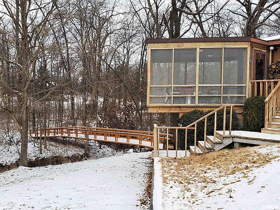 Custom built brick home on 4+ acres! Kitchen with cherry wood cabinets, granite countertops, heated tile floor and stainless steel appliances including gas stove! Master suite & bath with stand alone shower, personal sinks and heated tile floor. Hardwoods in main living room, dining and entry. Additional kitchen cabinets & sink in walk out basement. Upstairs has 2 bedrooms with full bathroom. Basement has half bath and also a very large storage room with built-in shelves. Office on Main Level could be 4th bedroom, large finished room in basement has closet and could be 5th bedroom. 2 large attached screened and covered decks for the outside gatherings. Charming foot bridge over the creek area to the woods for the nature lover. Concrete drive, attached garage and detached garage Huge yard. Edge of town privacy but "in town" convenience, just a block and half away from beautiful public park and the local hospital! One of a kind home with a one of a kind location in Salem!