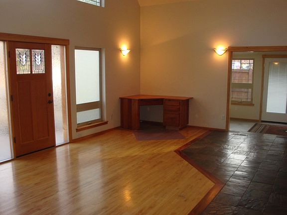 This is a one of a kind home in desirable Mid-Town Bend. The upstairs master bedroom/loft has a lovely master bathroom with soaking tub and separate shower. There are 2 bedrooms on the main level, one which may serve as an office. There is also a hall bath on the main level. There are hardwood floors in the living area with slate floors in the kitchen. The island kitchen has granite tile countertops. There is a sunroom off the dining area that has radiant heated floors and access to the sauna and back yard. Large windows allow in lots of natural light. There is a double garage with additional parking. It has space for a RV. This is a lovely, must see home in a centrally located area. Tenant responsible for all utilities and yard care. There is a small patch of grass in the front and the back yard is paving stones.