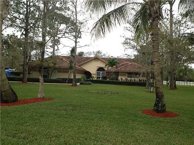 Rare find in Wellington! Boutique horse farm with everything you need, 3Br/3Bth pool home, 4 stall stable w/separate feed & tack rooms, 3 paddocks and riding arena. Privately situated on the bridle path priced to sell. New kitchen & wood floors!