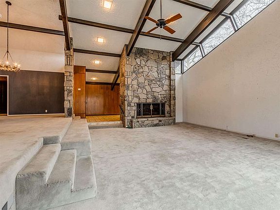 This is one of Ponca City's most iconic homes. It's a unique, Mid-Century Modern, masterpiece, originally built by the Paris family and designed by Tulsa architect Richard Neal. Located near the Marland Mansion on a 3+ acre lot, this home has large living spaces and storage that seems to go on forever. His and hers primary bath with mermaid bathtub dazzle the eyes and offers a spa like setting right at home.