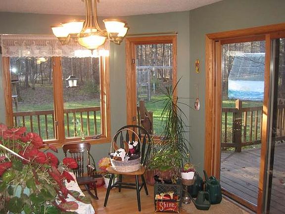 Two Story cedar sided 4 bedroom 3.5 bath home in a private forested setting. Comfort and quality. Impressive foyer with open staircase leading to the upper level where all the bedrooms are located. Spacious, pecan cabinet kitchen with casual dining area. Cedar paneled exercise room with 6 person hot tub, living room, family room, "Florida Room", master suite, rec room, bonus room, spacious two tiered back yard deck, attached 2 car garage, blacktop drive, natural gas, gas fireplace , first floor laundry, private back yard with storage shed and potting/germinating hideout. Access to Sumach Lake is about a 4 minute walk out the back lawn. A wonderful home and property with a wish list of amenities.