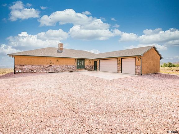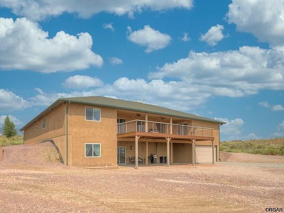 You will fall in love with this gorgeous, 5 bedroom, 5 bathroom custom ranch home perched just above Canon City on almost 5 acres, with panoramic views of the surrounding mountains! This property checks more boxes than can be listed, starting with the unbelievably desirable and gigantic 50'x100' shop with 220 amp power with 3/4 bath, and additional space for parking all of your toys, or almost anything you could dream of! Complete with a fully finished walk-out basement, second kitchen and laundry room, this home has everything you are looking for and more. Inside you will find beautiful hardwood doors and woodwork, custom cove lighting, pristine tilework and vast spaces everywhere. This home also features in-floor radiant heat, two fireplaces, central vacuum system, stainless-steel appliances, attached 3-car garage as well as an additional attached 4-car garage with heated floors. The 5-piece master suite features double walk-in shower and heated spa tub, along with access to the brand new 700+ square-foot covered Trex deck, natural gas BBQ grill included! This is the perfect place for anyone looking for absolute peace and quiet, and the simple luxury of living in stunning and affordable Southern Colorado. Don't miss out on and schedule your showing today!