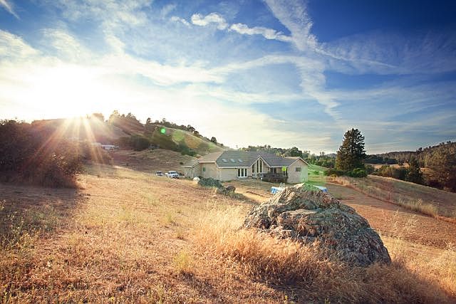Country Paradise on 11 gently rolling acres with a seasonal pond offers 2 homes, a beautiful single story custom home and fully permitted manufactured home, make this property perfect for a large extended family or for generating rental income. Pristine, this quality built home features 2x6 construction, an open floor plan with huge kitchen and cozy nook, opens to a large family room with pine cathedral ceiling and wood burning fireplace, the formal living room leads to a dining room with floor to ceiling windows to enjoy the picturesque views for miles and miles. The modular home is on a permanent foundation and features 3 bedrooms, 2 baths and rents for $1200 per month. Endless possibilities await, this beauty is perfect for the horse lover to build their equestrian dream. Enjoy wine? Plant a vineyard on the gently rolling hills. Only 12 minutes to HWY 50 this amazing private parcel is truly a gem! Remodeled.