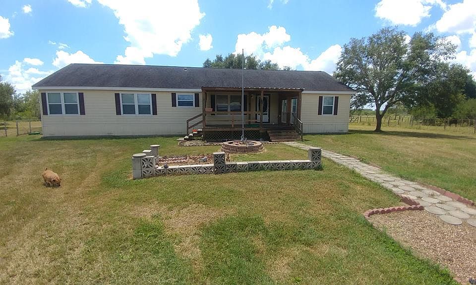 25 beautiful acres outside of Goliad with lots of trees, deer, some turkeys and a great home for a few cattle. This property features a 2,432 square foot 2009 Palm Harbor home with 3 bedrooms, 2 full baths, formal living room, dining room, eat in kitchen, laundry room with sink and a partially enclosed deck on the front. Sheds and a pole barn. This is country living at its best!