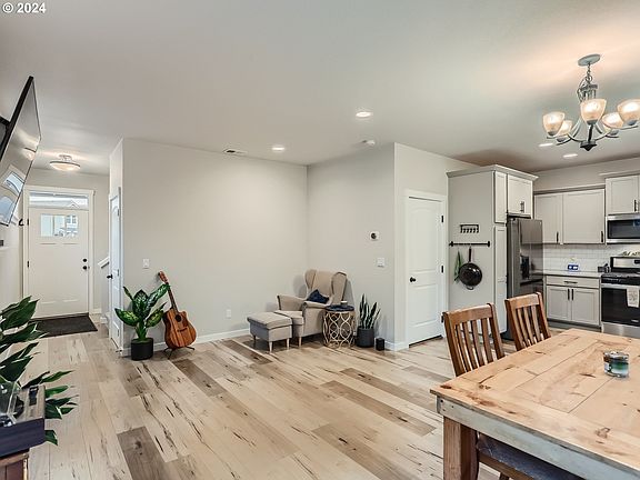 Back on market no fault to seller. Discover tranquility and modern living in this stunning 3-bedroom, 3.5-bathroom gem nestled in a serene location. Boasting meticulous design and top-notch features, this residence is a perfect blend of comfort and style. Step into a chef's dream with stainless steel appliances, quartz countertops, and elegant bronze finishes. The kitchen is not just a workspace but a stylish focal point of the home. Enjoy the luxury of a fenced backyard, creating a private retreat for relaxation or entertainment. Embrace the beauty of the outdoors on two spacious decks, perfect for morning coffee or evening sunsets. Unwind in the large master suite, a sanctuary of comfort and style. Whether it's the spacious layout or the luxurious finishes, this is a space you'll love coming home to. Additionally, a large bonus room with a full bathroom is perfect for guests or as an in-law style suite. This home is equipped for the future with an EV charger in the garage and solar hookups. Embrace sustainability without compromising on modern conveniences, you'll find this home is designed for the needs of today and tomorrow. Immerse yourself in the beauty of the Ewing Young Loop Hike trailhead, right next to your home. A haven for nature enthusiasts, this location offers the perfect balance of convenience and natural serenity. From the moment you step through the door, you'll feel the warmth and charm of this riverfront haven. Don't miss the opportunity to make this exceptional property your own. Schedule a viewing today and experience the unique allure of River Run!