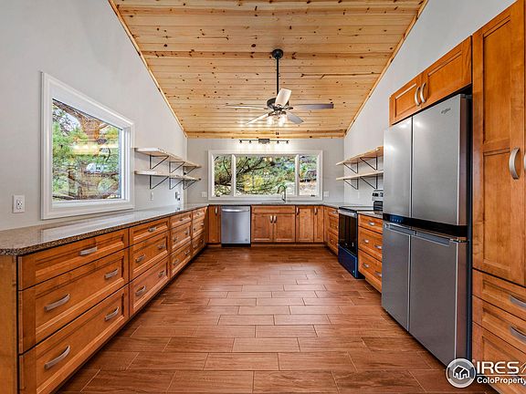 Welcome to your dream home in the heart of Estes Park, Colorado! This charming single-family residence offers the perfect blend of modern comfort and natural beauty. This recently remodeled haven is ready to be your next sanctuary. As you step inside, you're greeted by an open kitchen that's a chef's delight. Outfitted with stainless appliances and sleek tile flooring, it's a space where both daily meals and holiday feasts come to life. The tile flooring extends into the main living areas, offering durability without sacrificing style. The living room is a cozy retreat, complete with a fireplace that adds a warm touch to Colorado evenings. Whether you're curling up with a good book or hosting a movie night, this space is designed for relaxation. Adding to the home's versatility is a separate in-law area on the lower level, complete with its own entrance. It's an ideal setup for guests or extended family, offering privacy and convenience. For those with larger vehicles or outdoor gear, the garage features extra-tall doors, providing that additional space you've been looking for. Step outside onto your private deck and you'll understand the true allure of this property. The lot is a nature lover's dream, adorned with pine and Aspen trees that come alive with stunning fall foliage. The slight slope of the land leads you to a peaceful creek, adding a tranquil soundtrack to your outdoor moments.And let's not forget the location! You're just 2.8 miles away from the Beaver Meadows entrance to Rocky Mountain National Park. Whether you're an avid hiker or simply enjoy weekend drives through scenic landscapes, this home puts you in the center of it all. Don't miss this opportunity to own a slice of Estes Park paradise. Schedule your private tour today and come experience the lifestyle you've been dreaming of!