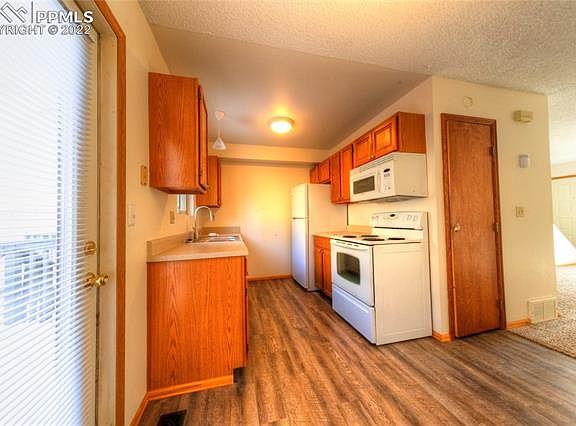 West side townhome perched on the bluffs that has views of Pikes Peak! This home has been well cared for and has many up upgrades and extras added over the years. Newer paint, trex decking, flooring, vanities, light fixtures, dishwasher, windows and carpet. Location, location, location. Very desirable west side has Garden of the Gods and Ute Valley Park next door. Two executive suites one with spacious walk in closet, the other with double closets. Both suites are large and can accommodate oversized bedroom sets. Upgraded bathroom vanities and fixtures bring the space current. The pantry system is custom built with wood pull out drawers. Drink your morning coffee at the base of your own rock formation in the backyard. Rustic wood burning fireplace with natural wood tones for those cold winter nights. The garage is a tandem offering room for toys and a work space for all your projects. Their are cabinets for storage in the garage and a large closet under the stairs for additional space. Come own a piece of the rock!