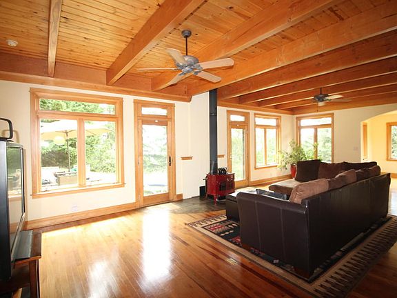 - Living: Ceiling Fan, Wood Stove, View, French Doors
