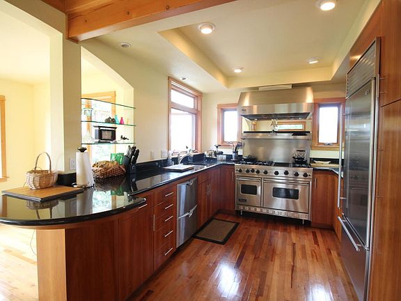 MOTIVATED SELLERS - MUST SELL! From the electric gated entry to the paved driveway, this privately situated quality home on 23 acres might be just what you are looking for. Many, many quality features throughout. Hardwood flooring, open beam wood ceilings, french doors, Encore Wood Stove, downstairs master bedroom, cherry cabinets, granite counter tops, Viking commercial grade gas stove, subzero refrigerator, Marvin windows, separate office room, floor radiant heat, lots of storage and much more. Enjoy a view from every room. A fire prevention reservoir, solar panels and back up generator. Fenced garden, fenced chicken yard w/coop and basement area for cold storage.