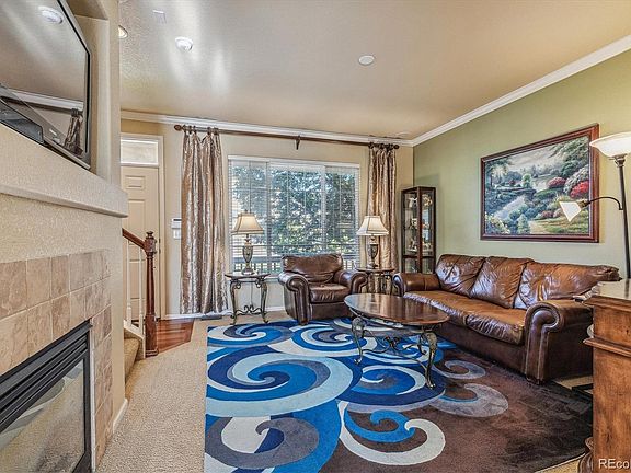This Former Model Townhome Has Lots of Goodies to Offer! Located Towards the Front of the Community for Easy Access. This End Unit has Extra Parking Behind, and a Lovely Greenbelt Area in Front to be Enjoyed From the Private Front Porch. What is so Unusual About This Townhome, is the Fact it Has a Two Car Garage, with Extra Storage Space, Directly Under the Unit! Simply Walk Downstairs to Your Own 2 Car Garage. Plus, There is Extra Parking in Your Own Driveway, and Open Parking Spots Behind! Sunny, Light and Bright, Inside You Will Find This Home to be Comfortable, Cozy and Spacious! Enjoy the Gas Fireplace in the Living Room and the Built in Speakers For Sound, the Amplifier Stays For Easy Hookup. The Kitchen has Granite Tile Countertops and Lovely Cherrywood Cabinets. The Dining Area is Surrounded by Windows and can Hold a Large Table. A Powder Room Adds to the Convenience to the Main Level. Upstairs You Will Find Two Primary Bedrooms, Both With Private Full Baths and Walk-in Closets. Also Upstairs is the Built-in Desk Area and Laundry. Heading Downward to the Lower Level is the Oversized Two Car Garage, Utility Room and Storage. The Pool is Right Down the Street. Located in Plum Creek With it's Own Golf Course, This Townhome Has a Fabulous Location. Walk to Old Town Castle Rock With all the New Happenings, or Across the Fairgrounds and Catch the Trail System Which Runs All Through the Area Down to the Creek. Be on I-25 Within Minutes, the Location Can't be Beat. Low Maintenance Living yet Private. Come See it Today!
