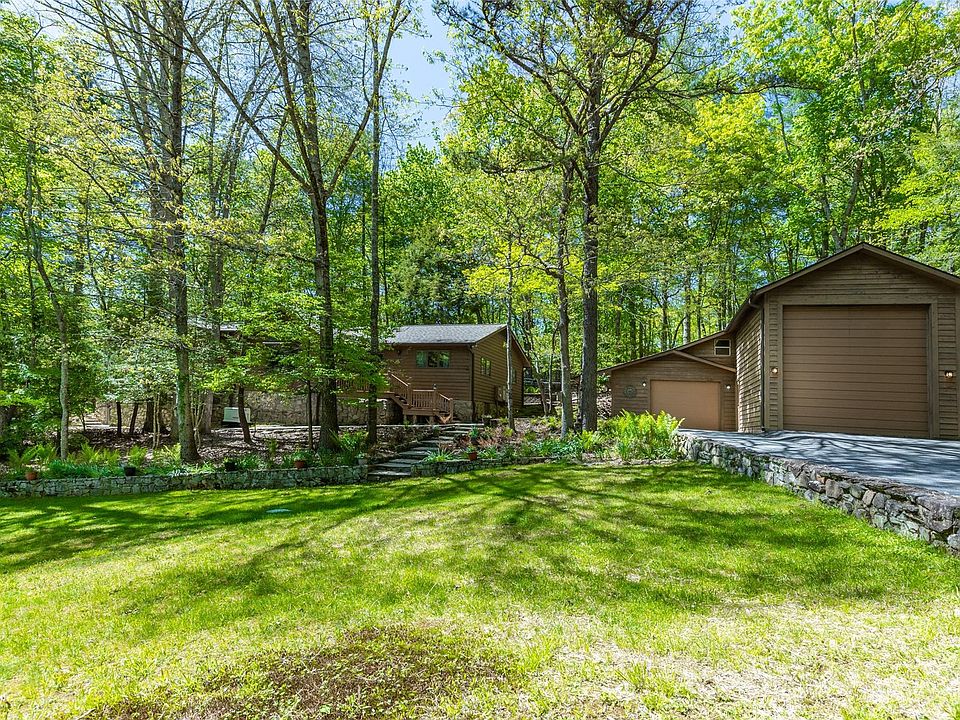 Beautifully updated, well-maintained, and expanded mountain home located in a premier, gated community. Complete with a single-car garage AND an RV parking garage that can be used as an amazing workshop, or house a horse trailer. This mountain cabin was thoughtfully and tastefully renovated to include an open floor plan, private master suite that floods with natural light, dressing area, updated bathrooms, and an expanded kitchen. The kitchen boasts two separate sink areas, a gas range, granite, custom hickory cabinets, and stainless steel appliances. Cedarwood beams, tongue-and-groove vaulted ceilings, and an oversized stone fireplace make the great room a cozy gathering spot, filled with mountain ambiance. A fenced-in backyard offers the perfect place for pets to play and a deer-safe area for gardening. The downstairs addition is a great entertainment/craft area complete with a half bath. New residents to pay $10,500 one-time amenity fee at close, or $12,500 by end of calendar year.