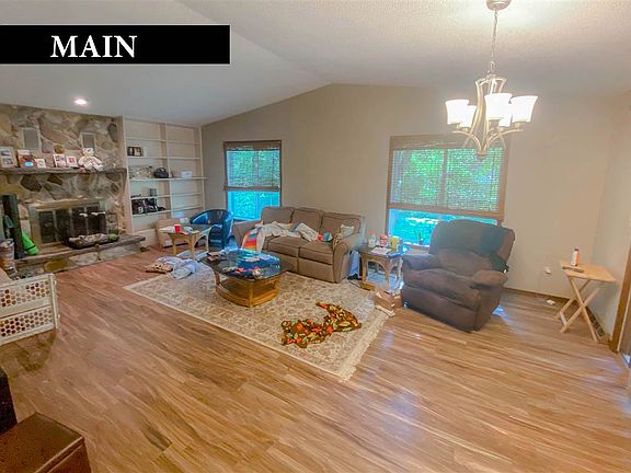 Duplex income property OR single-family home w/ accessory unit. Two units include upper 2 bdrms, 1 bth & lower 4 bdrms, 3 bths. Feat. Great Room w/ vaulted ceilings in each unit, laundry in each unit, separate entry, shared garage & storage. Main unit: fireplace, 3-season porch w/ access to fenced backyard. Upper unit: balcony off Great Room. Common: garage, storage. Wooded lot. Great in-law suite/income property potential.
