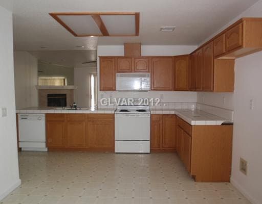 Nice 3 bedroom, 2 bath home with wood burning fireplace in the living room, kitchen has tile countertops and appliances, large master bedroom, partially fenced back yard, and desert landscaping in the front yard.