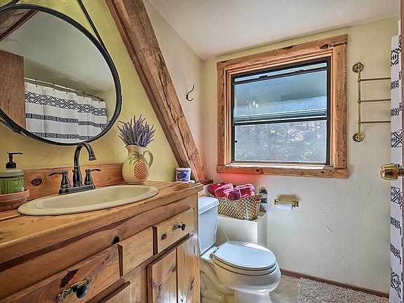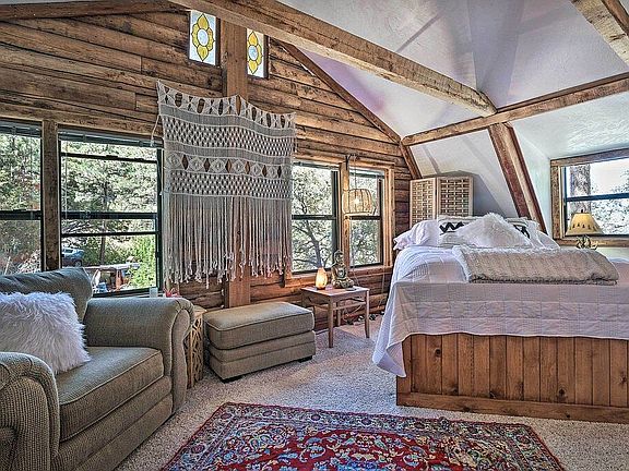 We all know this is what we come to the mountains for......a charming log home in the beautiful, majestic pine trees. As you drive up the concrete driveway you see the trees all around and the great back yard space for entertaining. Upon entering the home you have a lovely appointed kitchen with charming cabinetry open to dining area which circles around to a spacious living room with woodstove on brick hearth along with a convenient half bath. The front door leads out to a spacious deck surrounded by trees, a wonderful spot to sit out and enjoy the nature around. All bedrooms are upstairs with a shared full bath. As well as an adjacent lot available for an even bigger yard! This home has all the characteristics for anyone to enjoy a log cabin in the mountains and make wonderful memories!