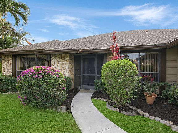 Welcome to this wonderful custom home in the heart of Wellington. Consisting of 4 bedrooms, 2 bathrooms, and 2400+ sq ft under air, this will become your private oasis. The beautiful pool with screen enclosure is encompassed by year-round tropical breezes, and it's situated on one of the largest available waterfront lots in the neighborhood (11,536 sq ft). This waterway also feeds into Lake Wellington, a beautiful spot for fishing and boating. Positioned in a phenomenal A-rated school district and close to excellent medical facilities, additional features include a brand new irrigation pump, recently resurfaced pool, newer gutters, central vac, and 200 amp electrical service. Schedule your tour today.