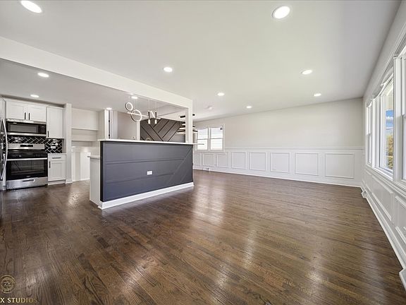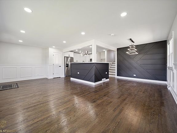 Come take a look at this beautifully rehabbed Tri-level styled home w/ plenty of wow factor! Walk into an open floor concept w/ great natural light, two custom eye-popping accent walls, LED recessed lighting, exclusive light fixtures and beautiful mahogany tone hardwood flooring throughout. The gorgeous kitchen boasts black w/ gold accent fixtures and lighting. An L-shaped breakfast styled bar w/ durable quartz counter-tops, custom designed backsplash, beautiful shaker style soft close cabinetry and a high end Whirlpool appliance package. Head upstairs to three over-sized bedrooms, a full bath w/ eye-catching tile work, floating vanity, one-of-a-kind fixtures and lighting. Head downstairs to a herringbone flooring designed family room w/ a custom built one-of-a-kind entertainment wall w/ built-in lighting and heated fireplace. The finishing touches on the lower level are a modernized full bath w/ eye-catching porcelain tile, floating vanity, exclusive fixtures and a laundry room. Proceed outside to a generous sized backyard w/ noticeably oversized 2.5 car garage w/ side driveway. This home is sure to satisfy the pickiest eye. Easy access to public transportation, expressway, restaurants, shopping and other area conveniences. This one won't last...