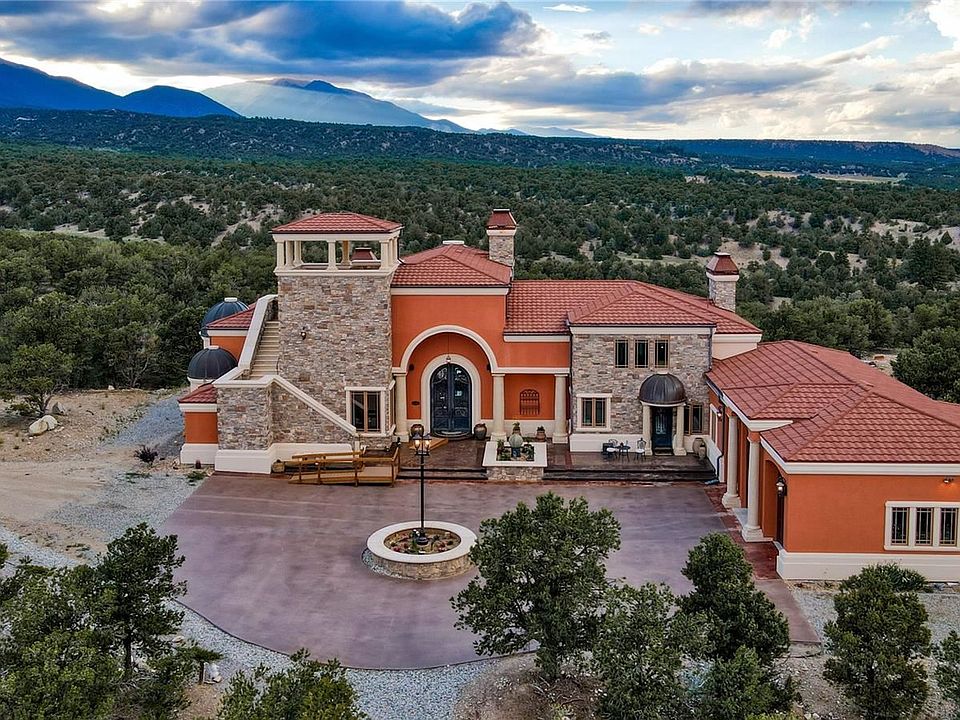 Retreat from the busy city to this enchanting, Italian-Tuscan style "Villa Oasis" mansion in the sky that is beautifully situated on the best 5.03 acres in Chaffee County! It is tucked deep in a beautiful, tree filled, gated community, just minutes from Salida. This is a one-of-a-kind, luxury home on a private, spacious lot. A grand entrance and a 3 car, oversized garage welcomes you to your 4 bedroom, 4 bathroom - 5,020 square foot home. Whip up a fantastic meal in your chef's kitchen with your Thermador appliances. Entertain from the wet bar or share wine and charcuterie on your oversized marble kitchen block as you take in the panoramic views of the serene outdoors. Enjoy one of the many fireplaces or melt away into another world in your unique master bath and deep Roman tub. Escape to the rooftop terrace to reach for the stars, views of Mt. Princeton or just to make a wish. Breathe in the clean mountain air, the scent of the pine trees and see as far as your vision will allow a 360 degree view. Let your mind drift off while realizing that the benefits of all your hard work just became your reality. Dreams do come true. Please see our virtual tour.