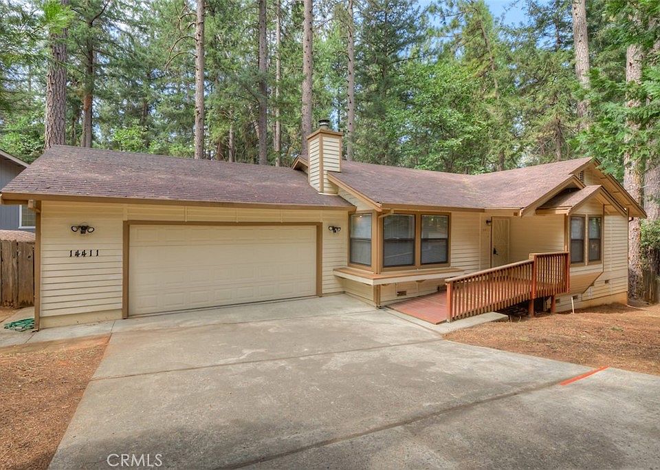 Quiet location for this well cared for 3BD, 2BA house. This home offers an open floor plan w/spacious living room that boasts vaulted ceiling, ceiling fan, recessed lighting & stylish pellet stove on raised, brick hearth. The living room opens to the kitchen & dining area complete w/stainless steel appliances, vaulted ceiling & lots of cabinets for storage. The wide hallway leads to all 3BD's; master bedroom features window seat, ceiling fan, walk-in closet & light, bright en suite w/tub/shower combo. The back yard is fully fenced & offers a nice deck to entertain guests or just relax & enjoy the natural views & wildlife. The oversized 2-car garage has room for additional storage & includes a handy utility sink!