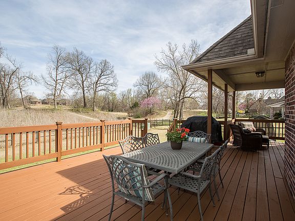 Well appointed mostly one-level custom overlooking the 13th Green of White Hawk Golf Course in Bixby Schools! Desirable plan features Master and 2 Bedrooms down plus large Game Room and 4th Bedroom up, open granite Kitchen and Family Room, handsome Office with French doors, extensive hardwoods and trim moulding. Fabulous Outdoor Living features custom deck, large yard and split rail fence overlooking wooded creek and golf course.