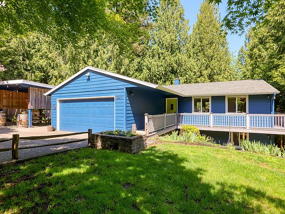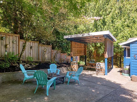 Welcome to Your Tranquil Retreat. Escape the hustle and bustle of city life and embrace the tranquility of your own private paradise. With its blend of natural beauty and modern amenities, this home offers a rare opportunity to live life to the fullest. This 4-bedroom/3-bathroom sanctuary is nestled on a cul-de-sac in a serene natural setting surrounded by majestic trees and lush perennials. Once inside, you will notice the warmth of the spacious interior, thoughtfully designed spaces and tasteful accents. The centerpiece of the home is the expansive living room that seems to blend into the exterior through the wall of windows. The dining room leads to the wrap-around trex deck which offers breathtaking views of the lush surroundings. Entertain in style with a kitchen that features an eat-in bar, plenty of counter space & storage and a picture perfect view of the established maple trees in the front yard. The lower level family room features a charming wood-burning fireplace that will come in handy after you enjoy your first glorious summer here. This home lives so much larger than the already spacious 1926 sq footage This property is a dream for outdoor enthusiasts. The oversized driveway with RV parking on the side has been magically transformed into an added outdoor living space currently featuring a wine bar and fire-pit. Gather around the picnic table under the covered carport and enjoy meals or a beverage, or spend time with family or friends around the nearby fire. Gardening aficionados will find established perennials dotting the landscape, while the utility shed and finished shop, converted into office space, offer practicality and versatility. Even your furry family members will be psyched to frolic around the fenced dog run. Schedule your private tour today and experience the magic of this exceptional property firsthand. Your dream home and property awaits. [Home Energy Score = 5. HES Report at https://rpt.greenbuildingregistry.com/hes/OR10225548]