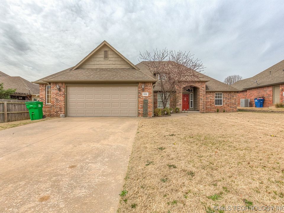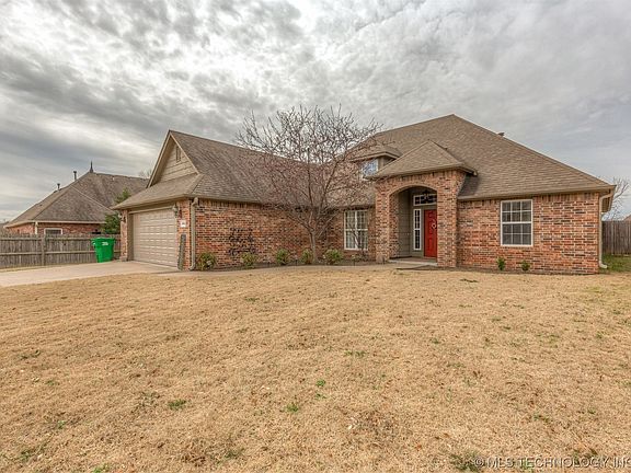 Move in Ready in Bixby School District! Three bedroom, two bath newly updated home in Falcon Ridge. Light and bright, open floor plan with wood-look tile in entry way, living room and kitchen! Living room boasts floor to ceiling fire place with beautiful built-ins on either side. Kitchen has updated stainless steel appliance, pantry and island seating for four! Additional flex space can be used for formal dining room, office or playroom! Master bedroom has vaulted ceilings, new carpet and is attached to a spacious master bath and closet. Split floor plan with two guest rooms and guest bath. Covered back patio with fire pit ready for Spring! This house is ready for you! Schedule your showing today!