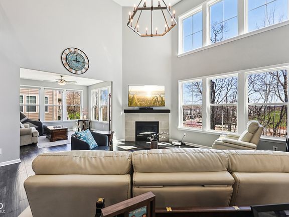 Welcome to the epitome of style and function. This exceptional home is thoughtfully designed with both comfort and sophistication in mind featuring beautifully engineered hardwood floors, a calming view that soothes the soul and a seamless connection to nature. Upon entering you will see your dining room, large enough for the best of family meals and memories, a main floor bedroom suite for In-laws quarters or to use as a home office. Drawing you in further is a grand 2 story great room with beautiful natural light shining through the large wall of windows & a gas fireplace. The open floor plan connects your kitchen, breakfast room and wonderful sun room that is just off the great room. Along with oodles of space for elevated daily living and entertaining you have 6 bedrooms, an ensuite on the main level, 4 upstairs and one in the basement. Your spacious Primary Bedroom has a large walk in closet, double sinks and large tiled walk in shower. The laundry room is conveniently upstairs as well. Lets expound on your outdoor living options-wonder from your kitchen to your screened in porch, or light a fire on the professionally designed patio or its raining-oh, sit under your covered porch area. Your finished basement is a WALK-OUT opening to the beautiful patio, extending your basement to the outdoors! The neighborhood has a pool, playground and walking trails. Your home invites you to relax in every season, enjoy cozy winter nights by the fireplace or unwind in the sunroom bathed in natural light, when the weather warms, step into your screened import or spacious outdoor living area that makes you feel as though you nestled in the heart of the woods this home is more than just a place to live, It's a lifestyle.