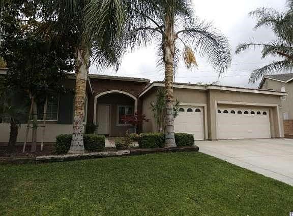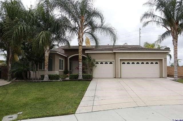 Stunning turnkey, rare single story 5-bedroom, 3-bath Pulte pool home, sitting on a large 11,761 square foot lot, located at the end of a quiet cul-de-sac with tons of upgrades. A must see, move-in ready home. Lush front and rear landscaping with lots of palm trees. Large open-concept living room and formal dining room with 10 foot ceilings throughout. Spacious family room with fireplace and large windows that look into the wonderful backyard. Beautiful kitchen with upgraded maple cabinets, high-end granite countertops and stainless steel appliances, including double ovens, large kitchen island w/breakfast bar, and walk-in pantry. Spacious master bedroom with large walk-in closet. Mirrored closet doors in all bedrooms. Built-in covered patio off family room. Gorgeous pool with waterfalls and large spa. Large BBQ island with separate patio cover, full plumbing, electrical, sink, bar, and refrigerator. Lava rock natural gas fire-pit. Rear yard is excellent for outdoor entertaining and family gatherings with plenty of grass areas as well. Solar panel system and 3-car garage with epoxy flooring. Very close to shopping, dining, and excellent schools. Don't miss out on this great opportunity.