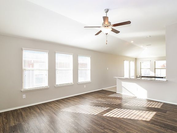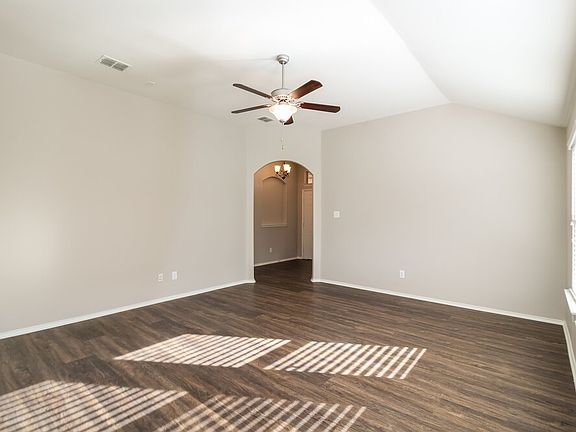 Please note, our homes are available on a first-come, first-serve basis and are not reserved until the lease is signed by all applicants and security deposits are collected. This home features Progress Smart Home - Progress Residential's smart home app, which allows you to control the home securely from any of your devices. Apply to lease this home by October 16, 2024 and receive $500 off your first full month's rent. Want to tour on your own? Click the "Self Tour" button on this home's RentProgress. You'll adore this front-gabled Haslet rental home with three bedrooms and two full baths in 1,696 square feet of space. Come in through the porch to find a bedroom with a bright arched window. The sunny living room has a ceiling fan/light fixture and a vaulted ceiling. The kitchen features beautiful, dark wood-look cabinetry, a subway tile backsplash, and stainless steel appliances. The dining room door opens to a covered patio and large, fenced-in yard. The main bedroom includes an en-suite bathroom with a walk-in shower, soaking tub, and dual-sink vanity. The bathroom leads into the roomy walk-in closet. Apply for this beautiful renovated rental home today.