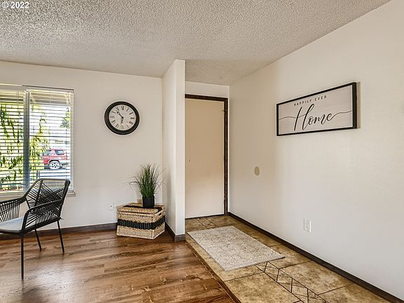 Gorgeous 3 bedroom ranch on large lot, nestled on a quiet cul-de-sac. Interior is freshly painted throughout with updated vinyl plank flooring, & vinyl windows. The spacious living room boasts a gas fireplace. Dining is open to living room, kitchen and covered patio great for entertaining. Two car garage & huge private fenced yard that's been freshly landscaped! A great buy for a first time homebuyer, downsizing to one level or a great rental! [Home Energy Score = 3. HES Report at https://rpt.greenbuildingregistry.com/hes/OR10205503]