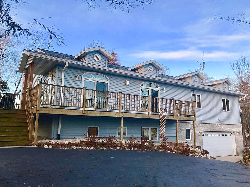 3 bedroom, 3 bath raised ranch built in 2005 on over 1.5 acres and 213' of Cedar Lake frontage. Open concept main living space w vaulted ceiling, brick gas fireplace, large kitchen island. Stunning Uni-block patio to sit and enjoy the quiet bay. Large exposed walk-out family room with full bath and retro bar area. Bonus 3 car detached garage for all the lake toys!