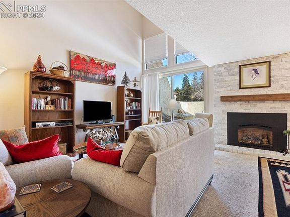 Nestled in the picturesque landscape of Colorado Springs is this 3 bedroom/ 3 bath/ 2 car-garage in Gleneagle. Fantastic floor plan and amazing mountain views from the west facing balcony! Walk into your front courtyard/atrium, upon entry you'll be welcomed by the bright living room, dining room and kitchen to the right with an updated 3/4 bath and office area to the left. In the upstairs you'll find the master with fireplace, and private balcony. The dining and living room share a gas fireplace and walk-out to the enclosed back courtyard. Lots of closet space throughout the home. Clean oversized garage with epoxy floors. Situated in a desirable neighborhood, this property provides easy access to local parks, shopping centers, D-20 schools and recreational activities. Commuting is a breeze with nearby highway access. Live the Colorado dream in this meticulously designed home—your perfect home in the Rockies awaits.